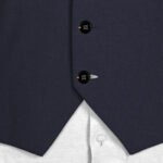 Clean lines, precise stitching, and a classic button-front closure ensure a sharp finish. Easy to pair with crisp whites or subtle patterns, this waistcoat delivers effortless sophistication with a bold yet elegant presence. What to admire: