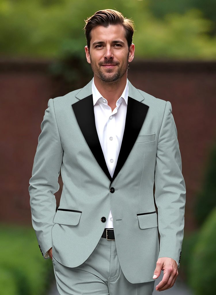 The soft grey hue exudes modern sophistication, offering a refreshing alternative to classic black while retaining timeless appeal. Crafted from premium fabric with a smooth finish, it moves effortlessly from gala evenings to formal celebrations. Elegant satin accents elevate its charm, making this tuxedo a statement of confidence, poise, and contemporary luxury.