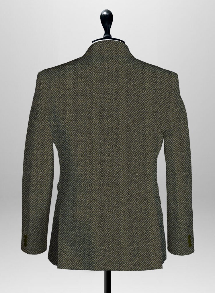055 Distinctive Wide Green Herringbone Tweed Jacket