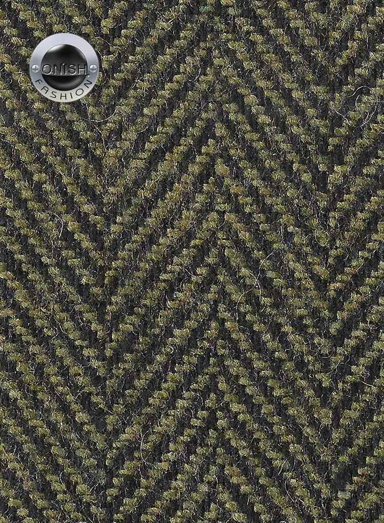 • Wide Green Herringbone Tweed Fabric