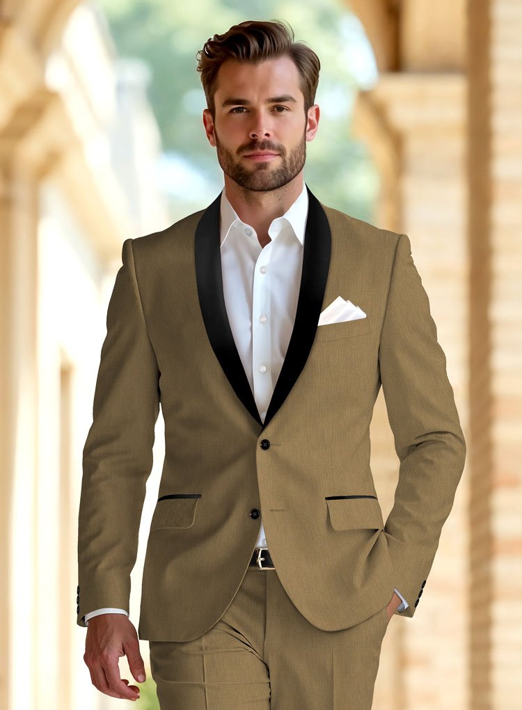 The expert tailoring gives extra definition to the shoulders and contours the waist to create a sharp, masculine silhouette. Luxurious satin lapels introduce a smooth contrast, elevating the jacket’s formal appeal. Thoughtfully placed welt pockets and a sleek button closure complete the design. Ideal for evening celebrations, this jacket blends rustic charm with timeless sophistication.